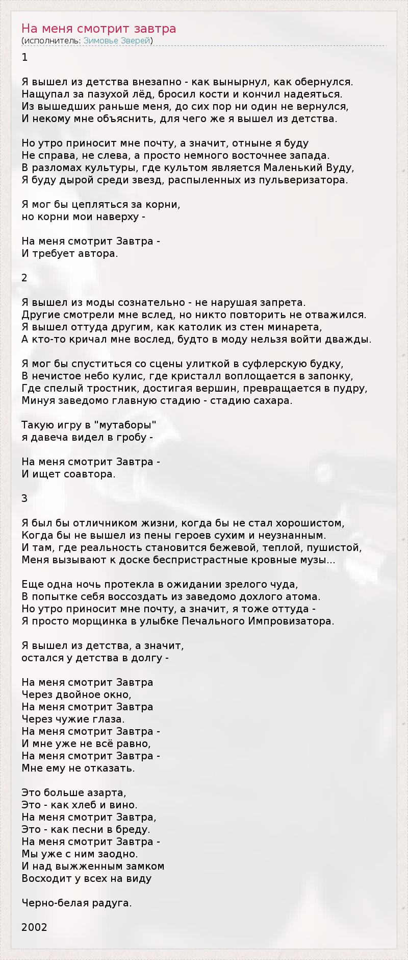 ГлавнаяИсполнителиЗимовье ЗверейНа меня смотрит завтра