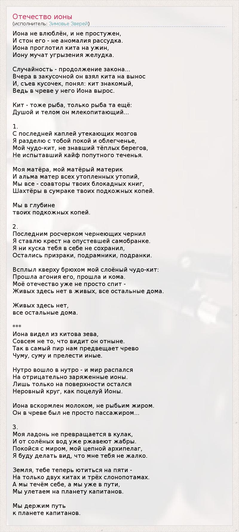 А как ты думаешь, о чем песня "Отечество ионы" ?