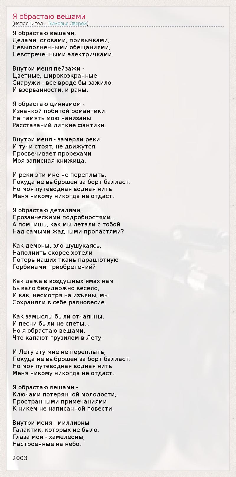 А как ты думаешь, о чем песня "Я обрастаю вещами" ?