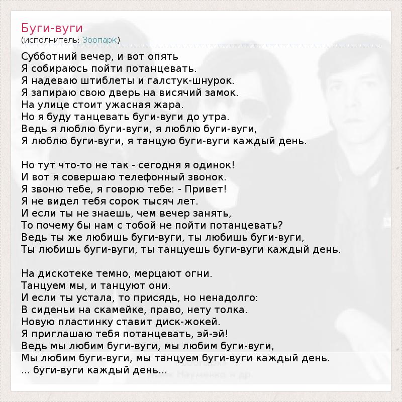 Ведь ты же любишь буги-вуги, ты любишь буги-вуги,