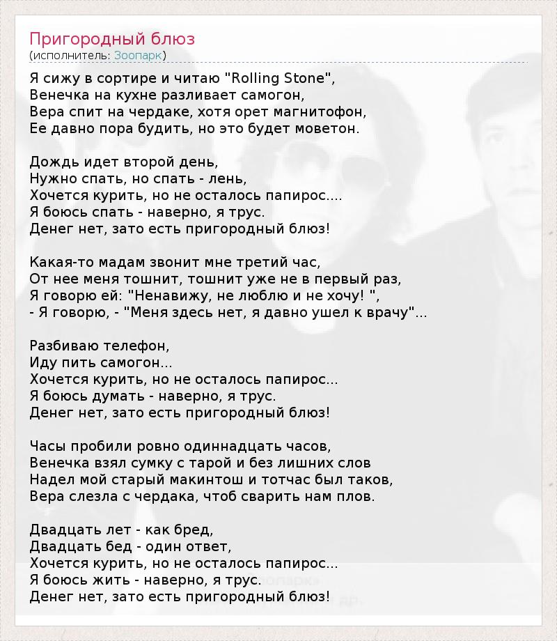 ГлавнаяИсполнителиЗоопаркПригородный блюз