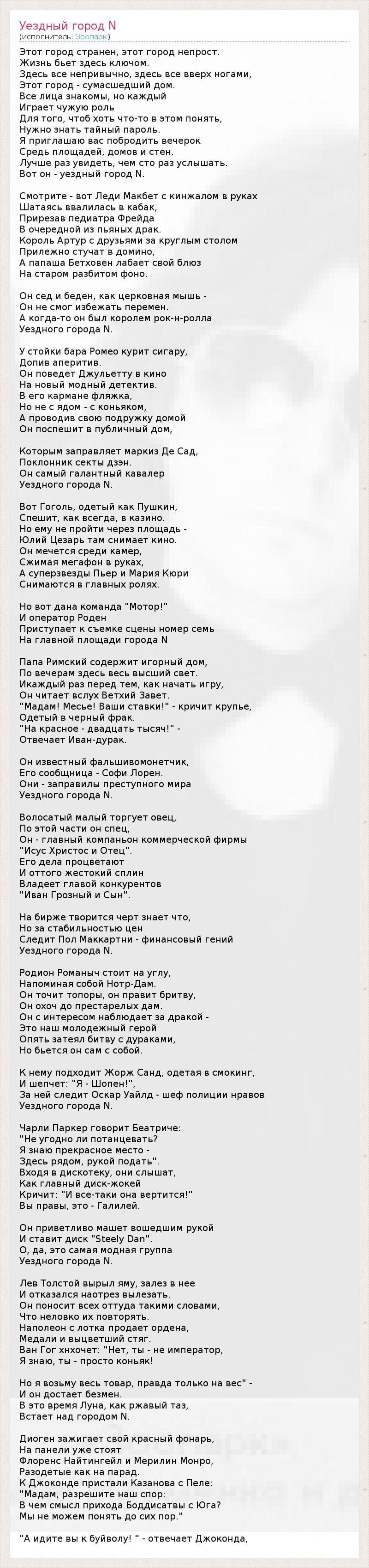 ГлавнаяИсполнителиЗоопаркУездный город N