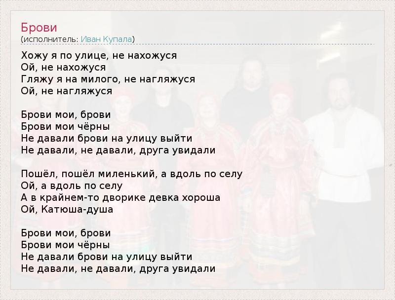Это интересно:«Ива́н Купа́ла» — российская электронная группа, работающая в стиле world music. Образована 17 августа 1998 года в Санкт-Петербурге Алексеем Ивановым, Алексеем Румянцевым и Денисом Фёдоровым. Отличительной особенностью творчества группы является использование в качестве основы для своих произведений аутентичного фольклора, в основном записанного в ходе этнографических экспедиций советскими... продолжение