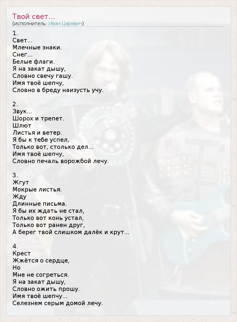А как ты думаешь, о чем песня "Твой свет..." ?