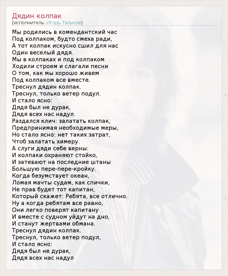А как ты думаешь, о чем песня "Дядин колпак" ?