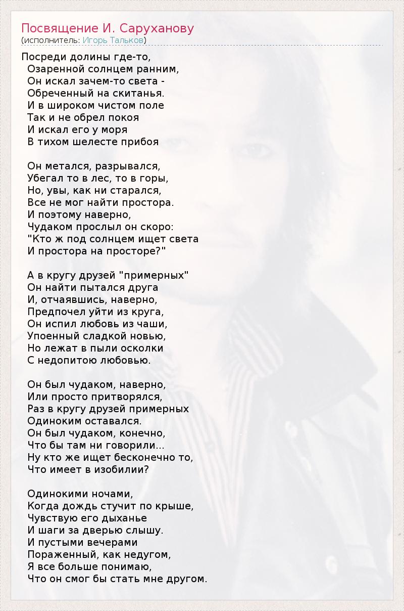 ГлавнаяИсполнителиИгорь ТальковПосвящение И. Саруханову