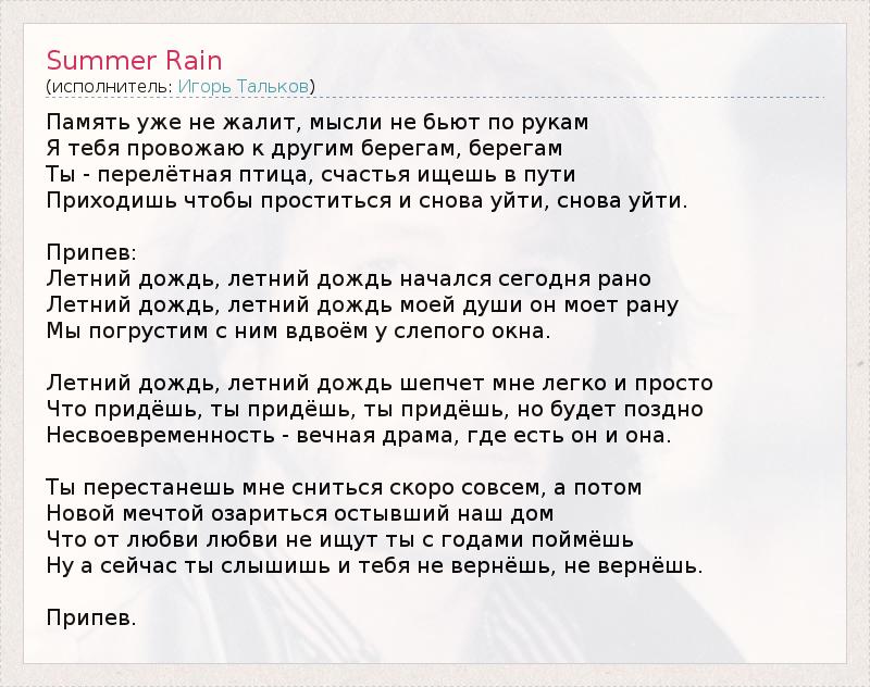 А как ты думаешь, о чем песня "Summer Rain" ?