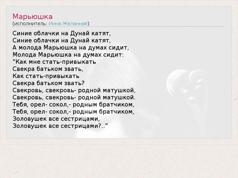 А как ты думаешь, о чем песня "Марьюшка" ?