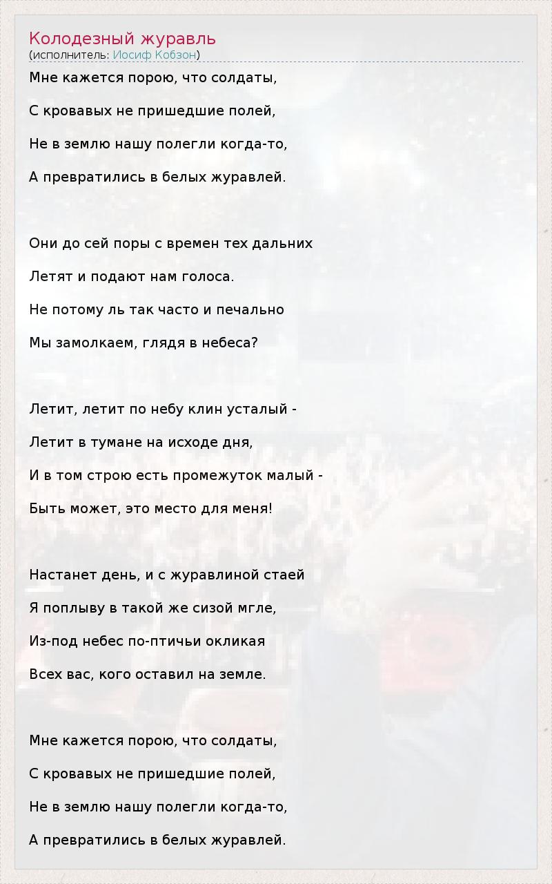 ГлавнаяИсполнителиИосиф КобзонКолодезный журавль