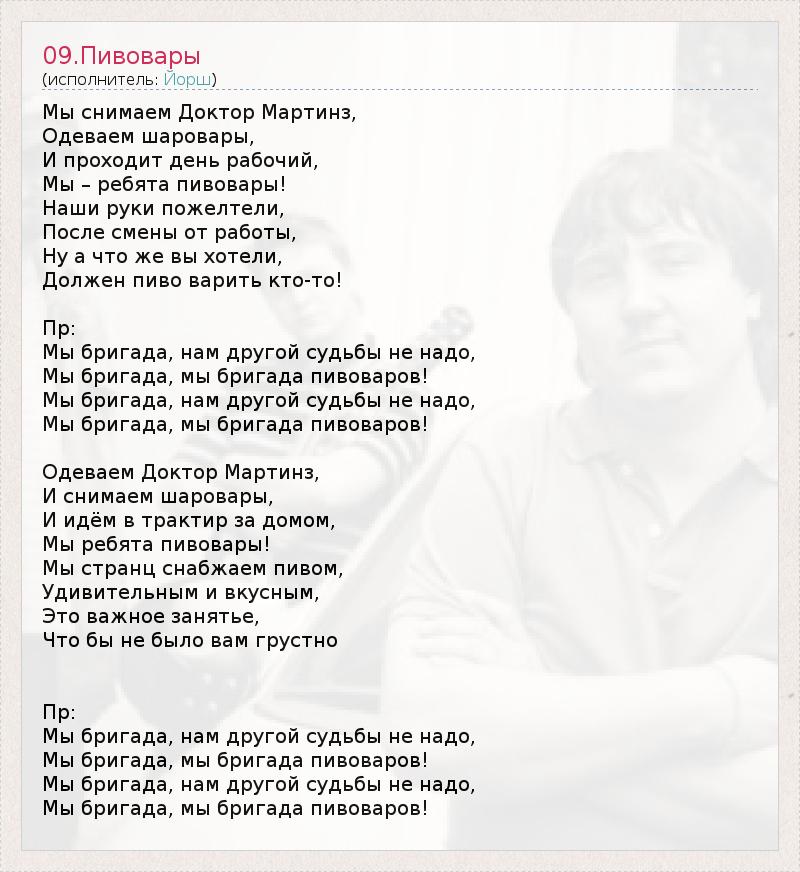 Йорш - Пивовары - Текст песни, слушать онлайн Йорш - Пивовары - Текст песни, слушать онлайн