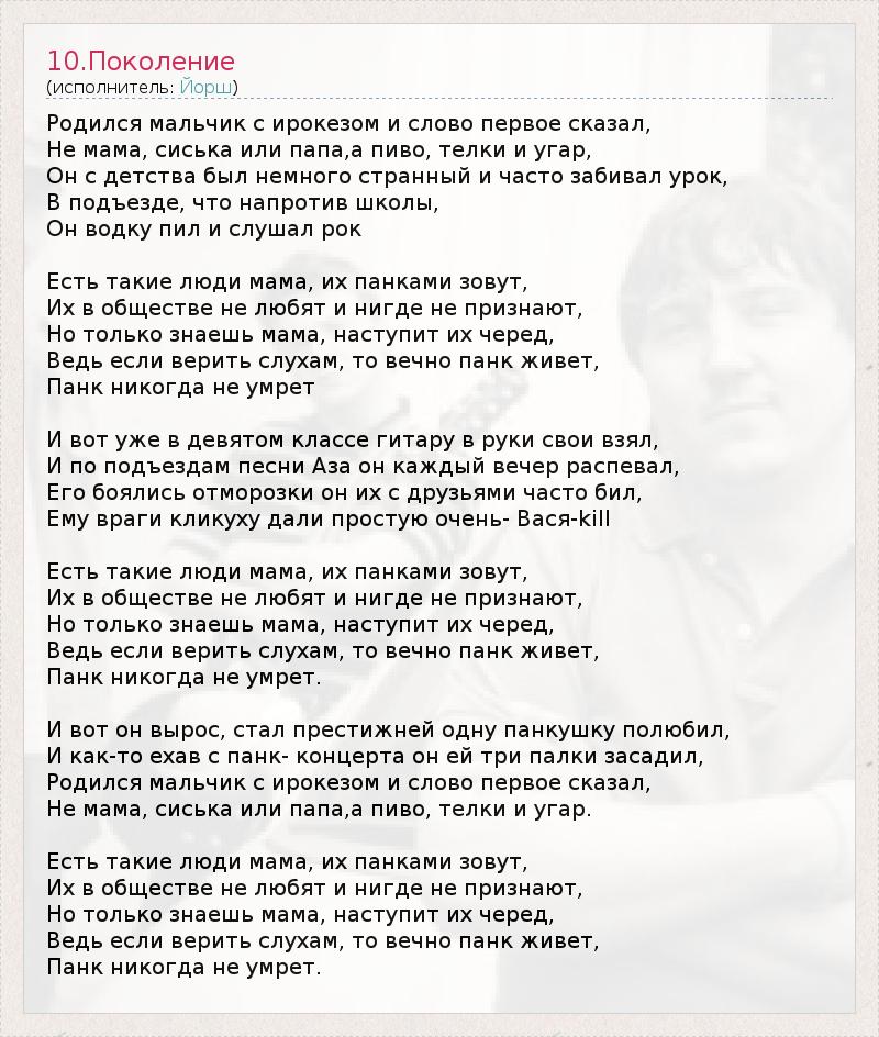 Йорш - Панк никогда не умрёт - Текст песни, слушать онлайн Йорш - Панк никогда не умрёт - Текст песни, слушать онлайн
