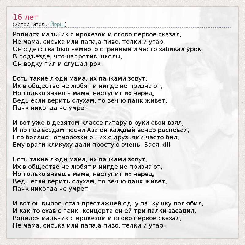 Йорш - Про панка - Текст песни, слушать онлайн Йорш - Про панка - Текст песни, слушать онлайн