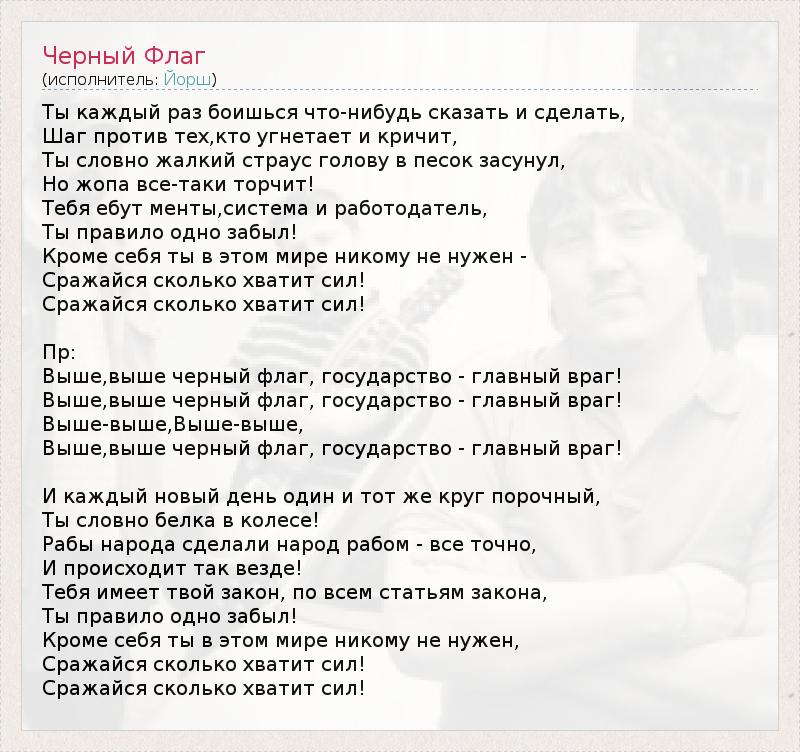 Йорш - Черный флаг - Текст песни, слушать онлайн Йорш - Черный флаг - Текст песни, слушать онлайн