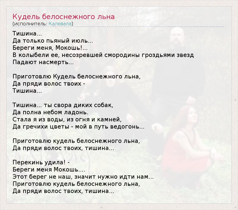А как ты думаешь, о чем песня "Кудель белоснежного льна" ?