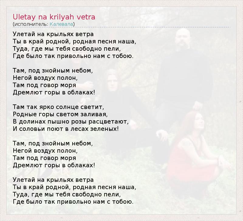 А как ты думаешь, о чем песня "Uletay na krilyah vetra" ?
