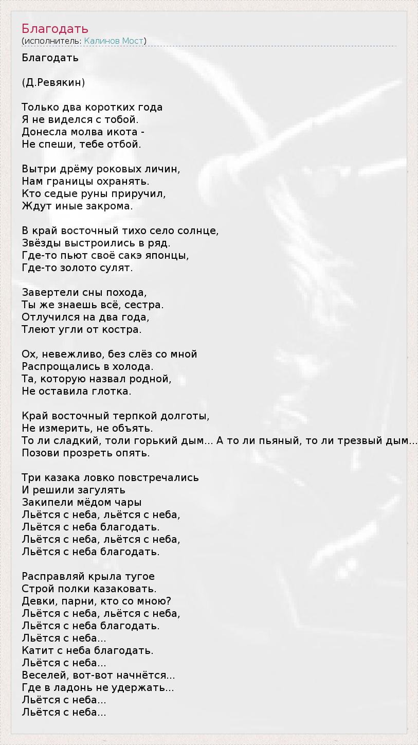 Лирическая тематика в альбоме уступает место идейным песням, хотя и не исчезает вовсе. Православие, которое Дмитрий Ревякин — лидер группы — принял в 2000 году, оказывает существенное влияние на тексты: во многих песнях упоминаются христианские понятия и символы («Выручать из плена близких дали ангелы приказ», «Крест поставьте деревянный на могилку казака», «Пресвятая Богородица, будь к избранникам добра»). Прослеживаются также патриотические мотивы и симпатия к Белому движению, например, в песне «Севастополь», посвященной трагическим событиям Крымской войны. Некоторые критики, проводя аналогию между Дмитрием Ревякиным и Константином Кинчевым , видят в этой тенденции проявление клерикализма и даже влияние государственной власти. Другие обозреватели считают, что подобная тематика — это бунт против реалий нашего времени.