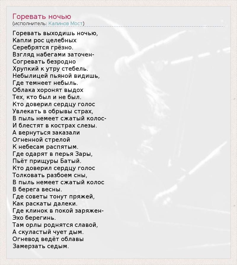 Это интересно:"Калинов Мост" - легендарная сибирская рок-группа (местом рождения самой группы считается город Новосибирск, колыбелью же лидера группы и автора песен - Дмитрия Ревякина - можно считать Забайкалье, где он провёл детство и где до сих пор черпает свои жизненные и творческие силы). Музыкальный стиль группы журналисты чаще всего определяют как фолк-рок. Конечно же, это весьма условно.... продолжение