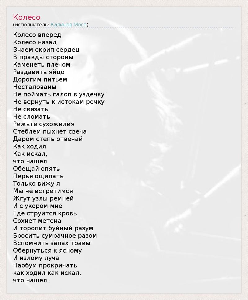Это интересно:"Калинов Мост" - легендарная сибирская рок-группа (местом рождения самой группы считается город Новосибирск, колыбелью же лидера группы и автора песен - Дмитрия Ревякина - можно считать Забайкалье, где он провёл детство и где до сих пор черпает свои жизненные и творческие силы). Музыкальный стиль группы журналисты чаще всего определяют как фолк-рок. Конечно же, это весьма условно.... продолжение