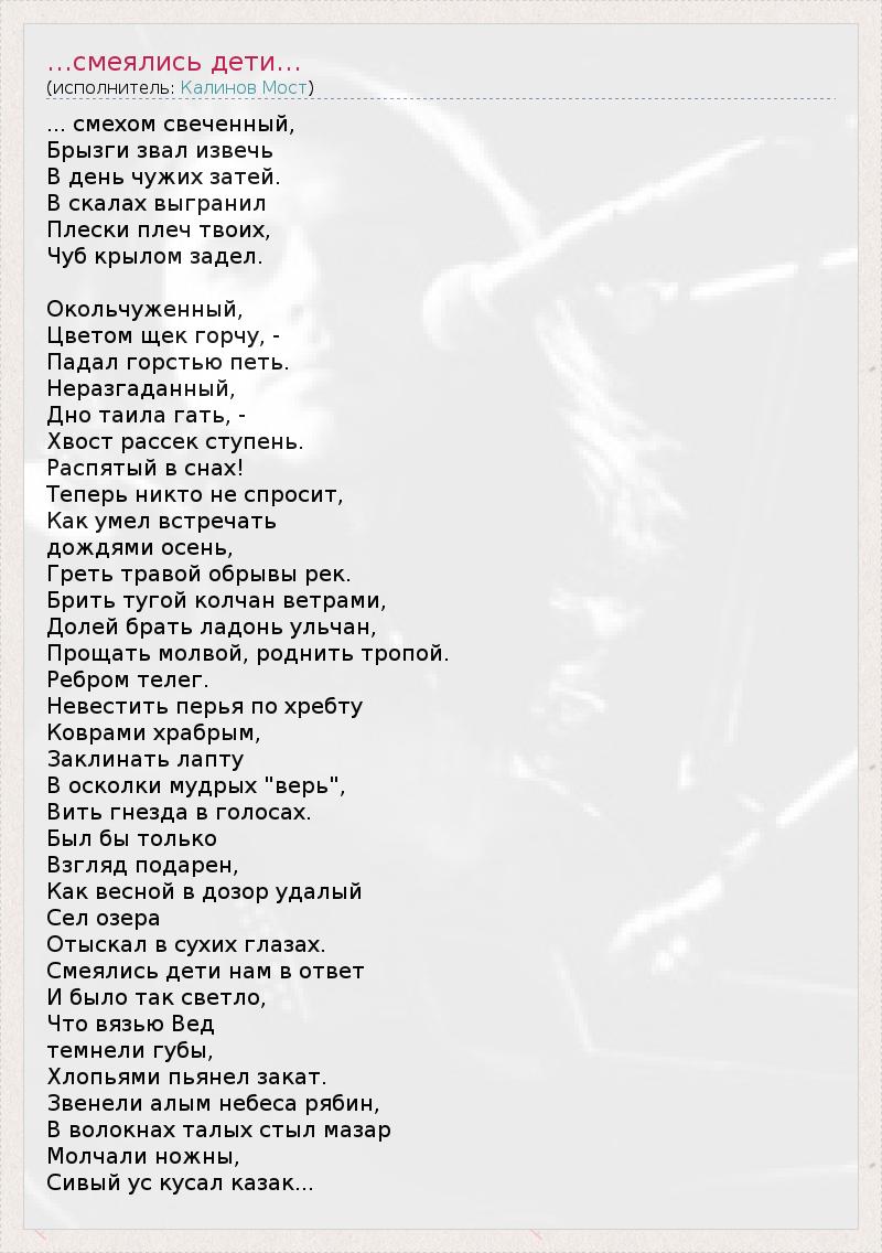 ГлавнаяИсполнителиКалинов Мост...смеялись дети...