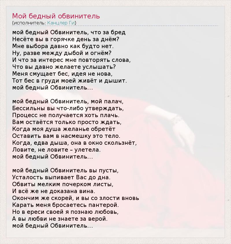 А как ты думаешь, о чем песня "Мой бедный обвинитель" ?