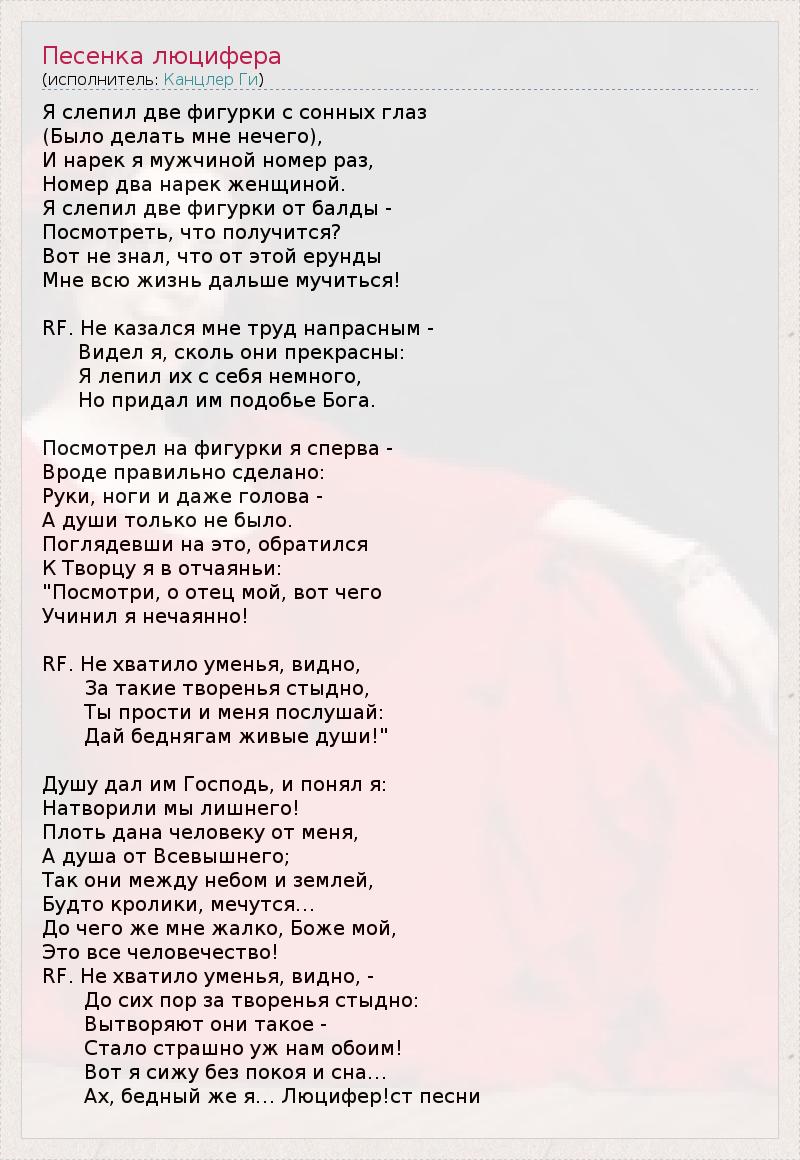 ГлавнаяИсполнителиКанцлер ГиПесенка люцифера