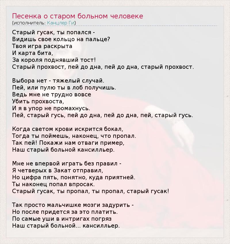 ГлавнаяИсполнителиКанцлер ГиПесенка о старом больном человеке