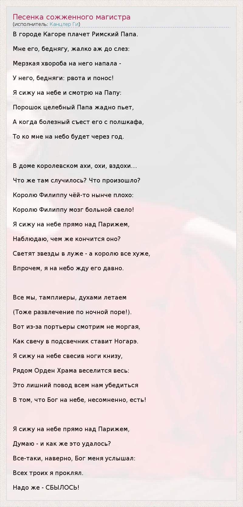 ГлавнаяИсполнителиКанцлер ГиПесенка сожженного магистра