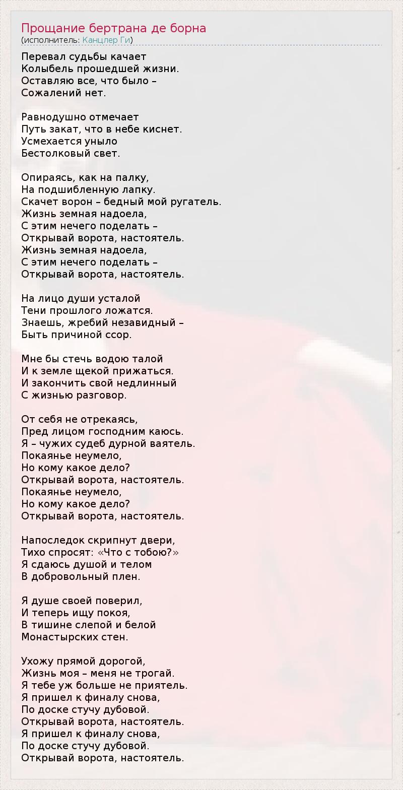 ГлавнаяИсполнителиКанцлер ГиПрощание бертрана де борна