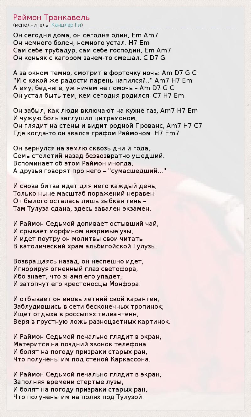 А как ты думаешь, о чем песня "Раймон Транкавель" ?