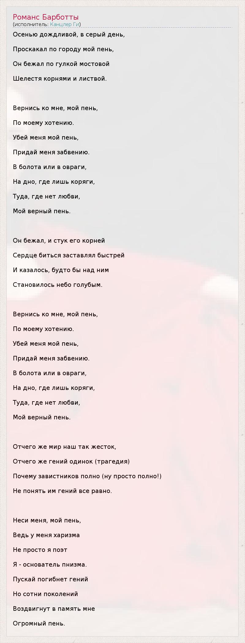 ГлавнаяИсполнителиКанцлер ГиРоманс Барботты