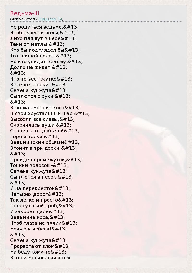 А как ты думаешь, о чем песня "Ведьма-III" ?