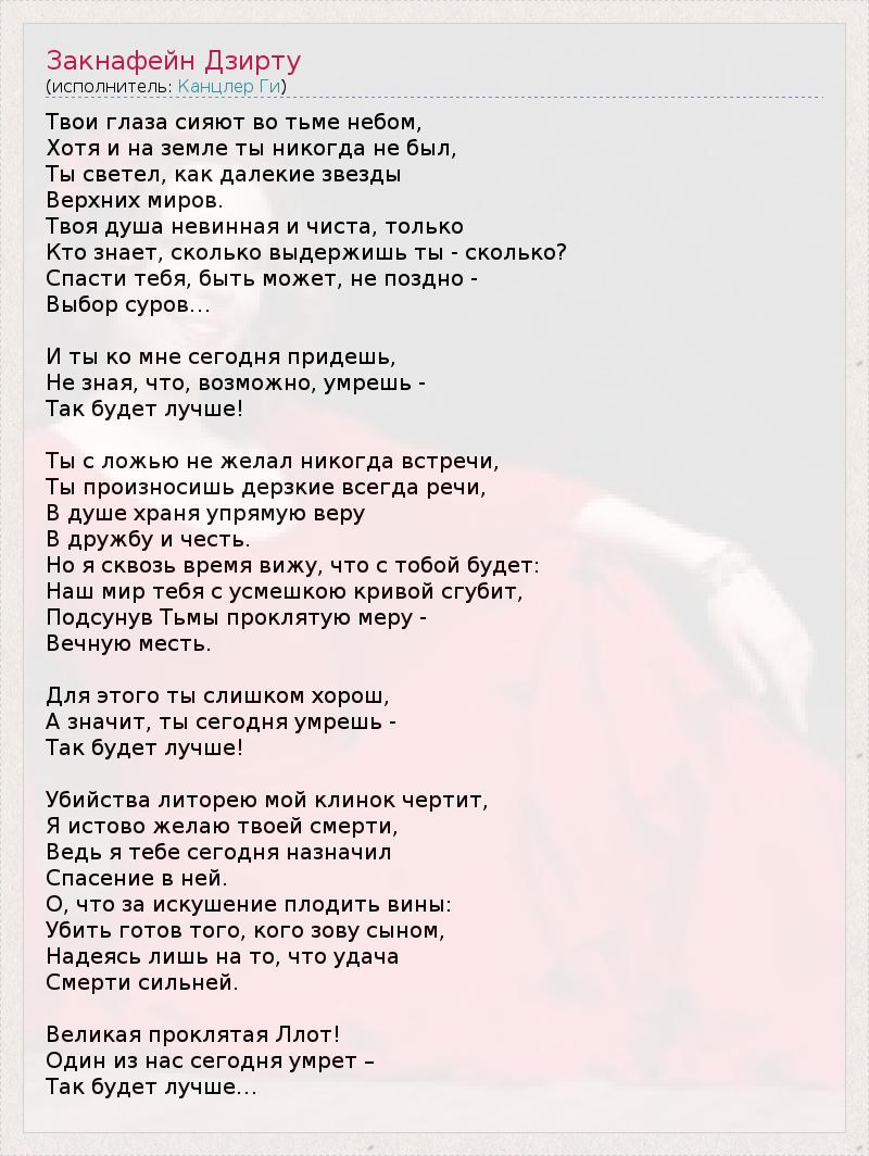 А как ты думаешь, о чем песня "Закнафейн Дзирту" ?