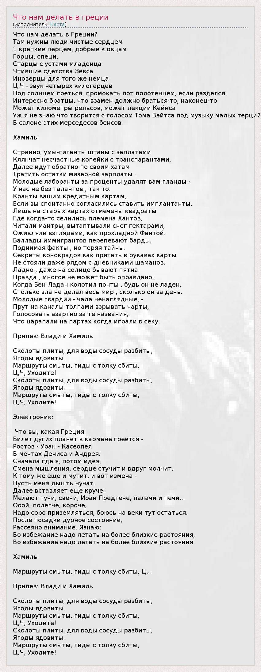 ГлавнаяИсполнителиКастаЧто нам делать в греции