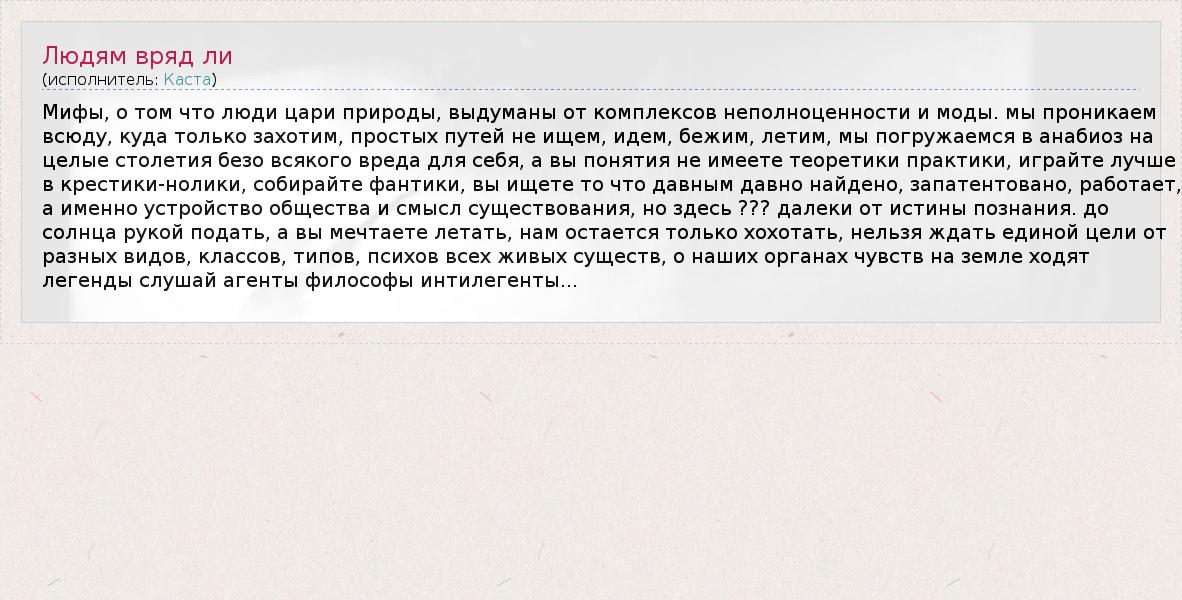 ГлавнаяИсполнителиКастаЛюдям вряд ли