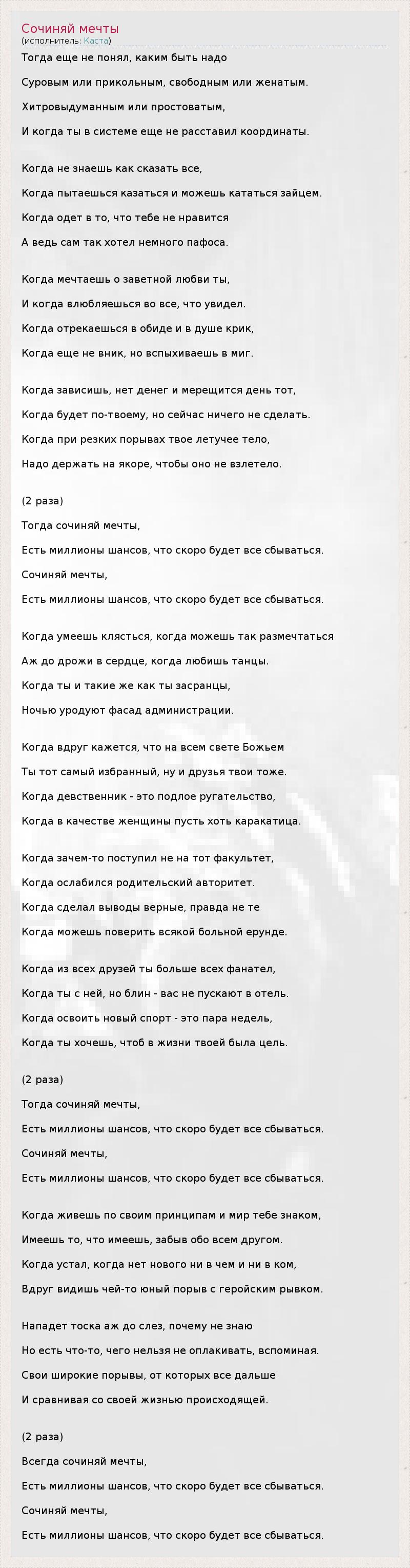 ГлавнаяИсполнителиКастаСочиняй мечты