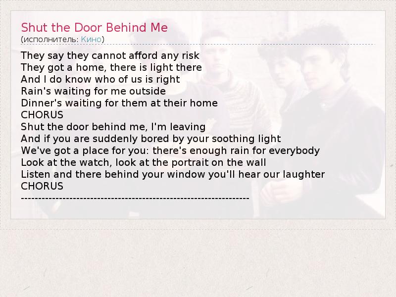 А как ты думаешь, о чем песня "Shut the Door Behind Me" ?