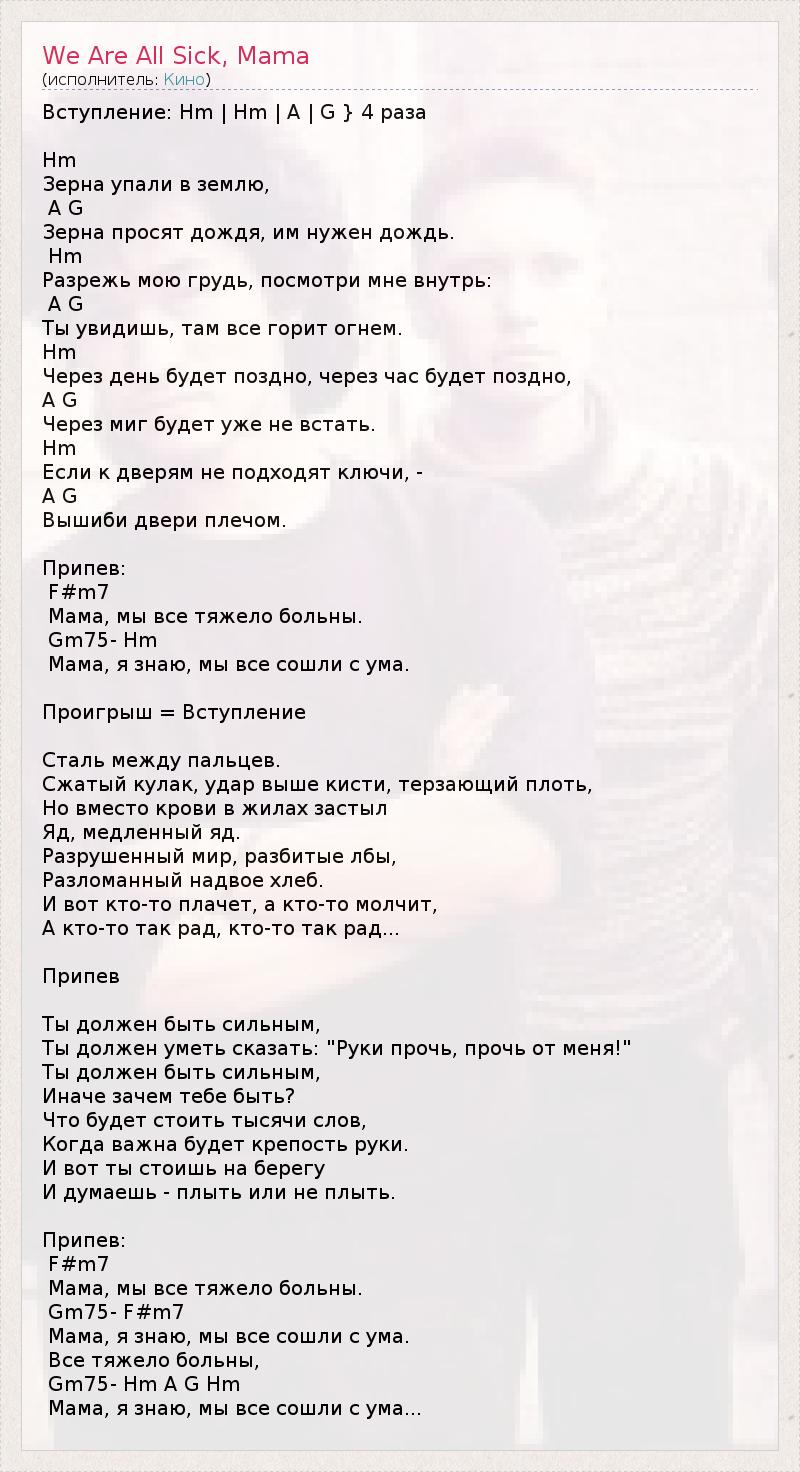 А как ты думаешь, о чем песня "We Are All Sick, Mama" ?