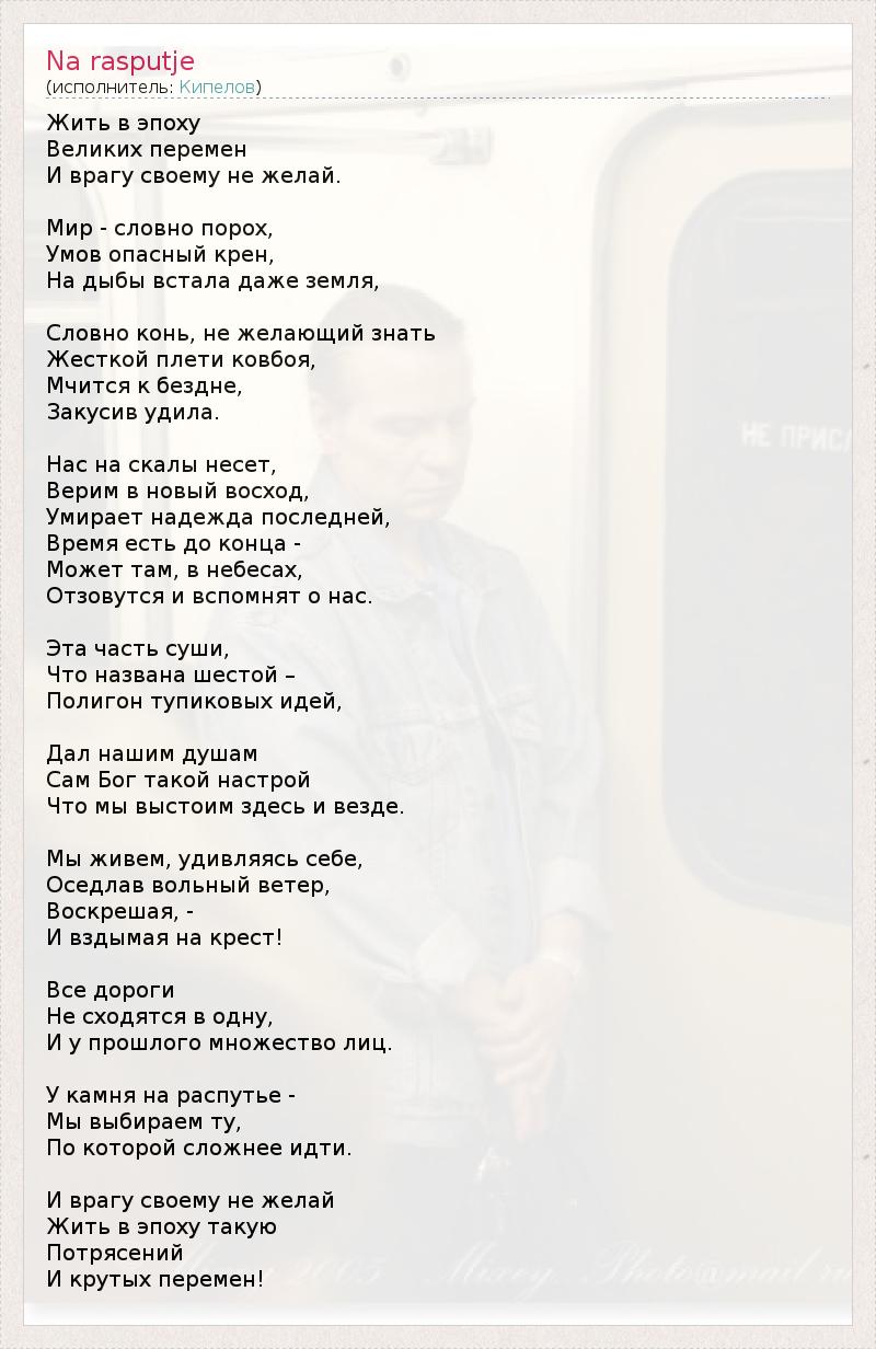 А как ты думаешь, о чем песня "Na rasputje" ?