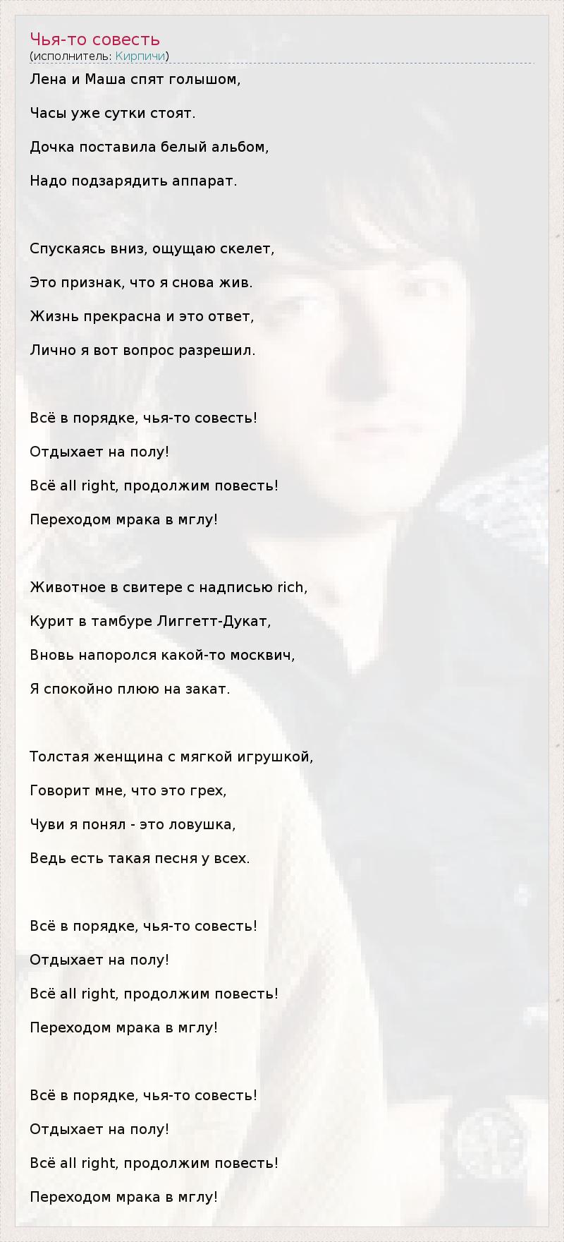 ГлавнаяИсполнителиКирпичиЧья-то совесть