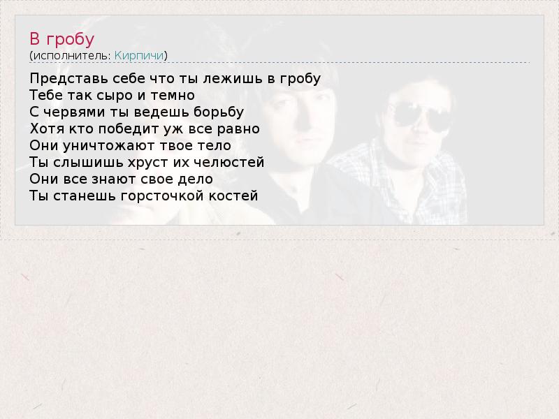 А как ты думаешь, о чем песня "В гробу" ?