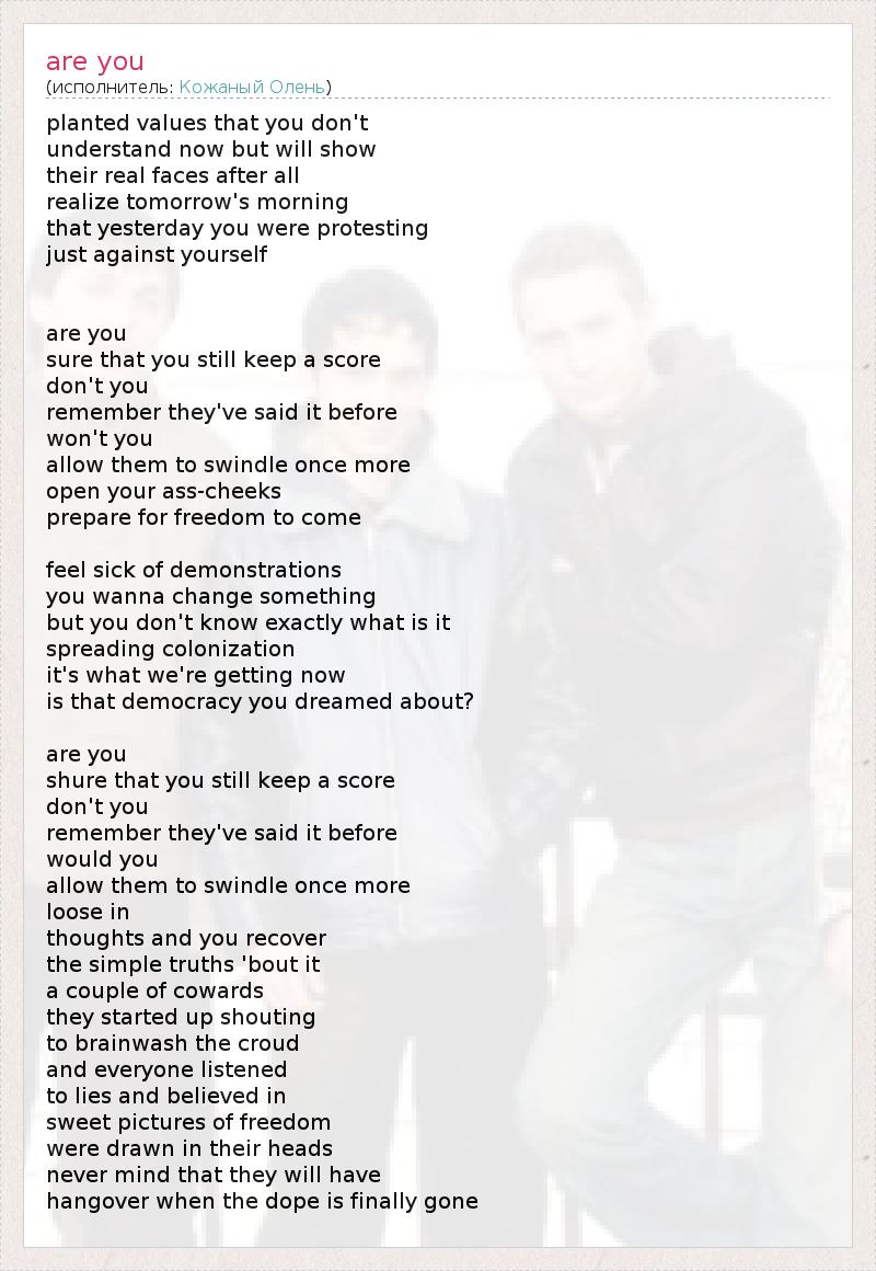 А как ты думаешь, о чем песня "are you" ?