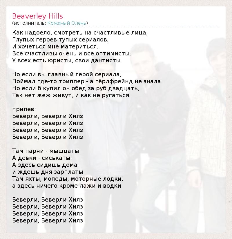 А как ты думаешь, о чем песня "Beaverley Hills" ?