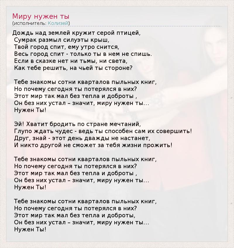 А как ты думаешь, о чем песня "Миру нужен ты" ?