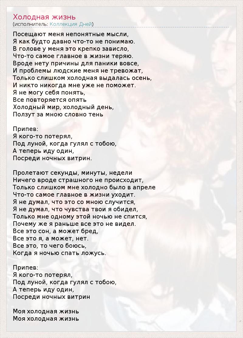 А как ты думаешь, о чем песня "Холодная жизнь" ?