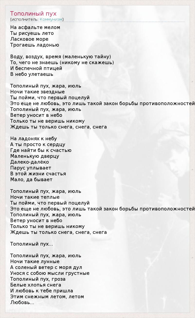 А как ты думаешь, о чем песня "Тополиный пух" ?
