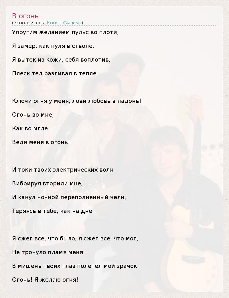 А как ты думаешь, о чем песня "В огонь" ?