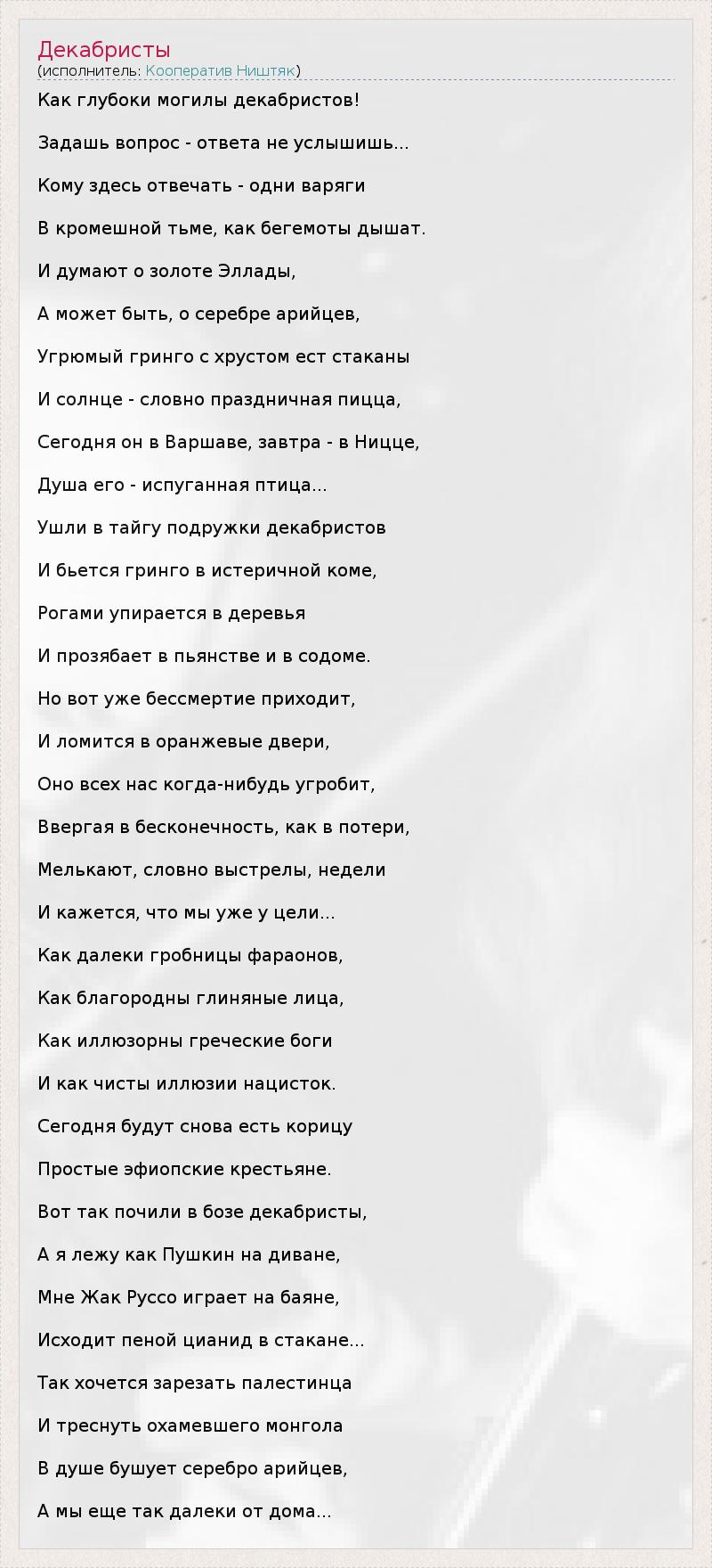 Это интересно:В начале 1990-х "КооперативништяК" был одним из наиболее ярких и известных ансамблей "сибирского панка". Коллектив возник на обломках оккультного общества в 1983 г. С группой сотрудничали в дальнейшем известные, малоизвестные и вовсе никому не известные личности, сущности и музыканты.В текстах "КооперативништяК" преобладает чёрная романтика, алхимические мотивы переплетаются... продолжение