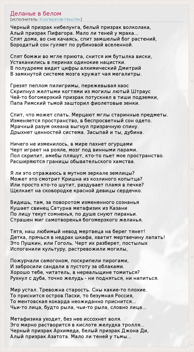А как ты думаешь, о чем песня "Деланье в белом" ?