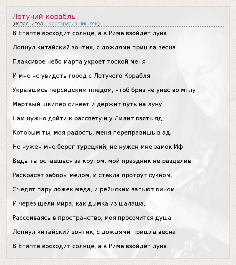 А как ты думаешь, о чем песня "Летучий корабль" ?