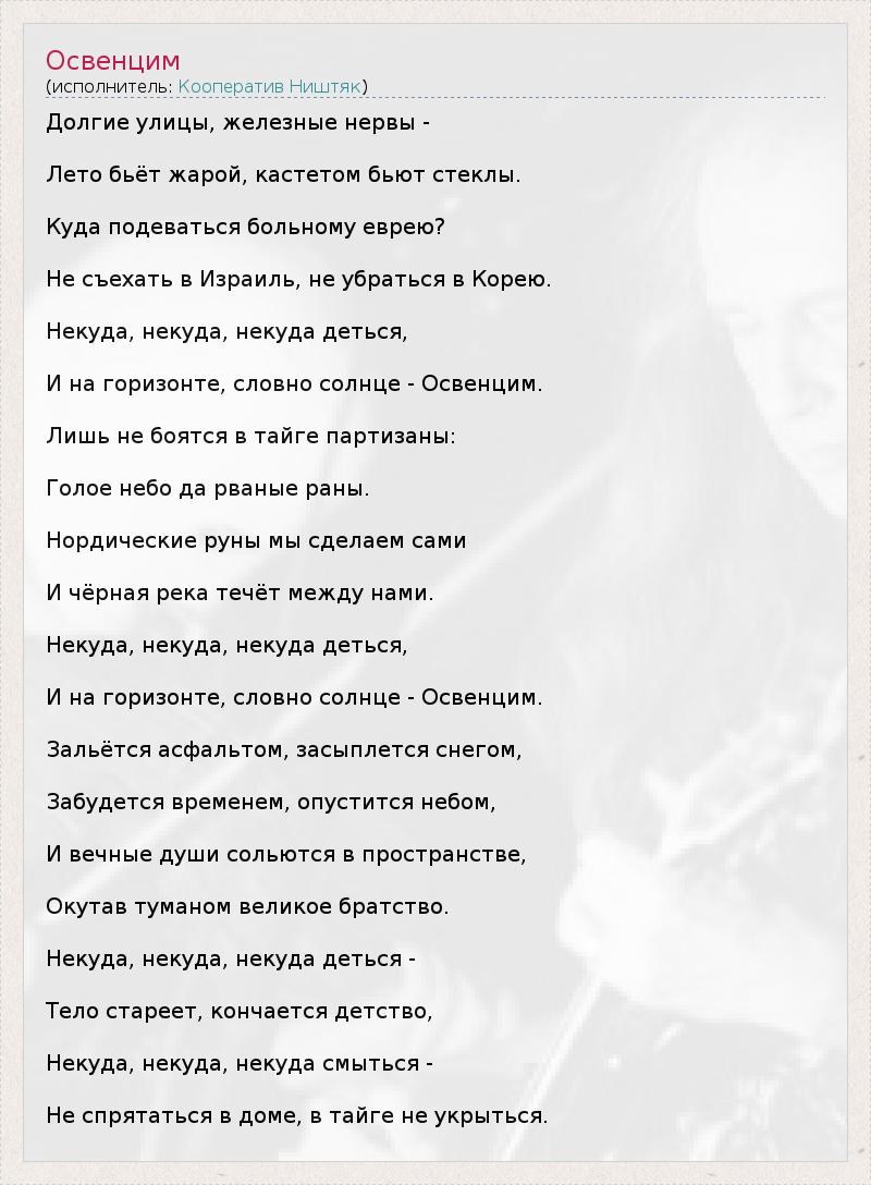 А как ты думаешь, о чем песня "Освенцим" ?
